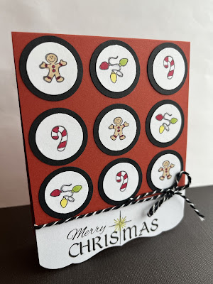 This one features Ugly Christmas Sweater Designer. It's a group of stamps that includes a sweater, some stitching lines along with 3 tiny images for the sweater! I mean, it was the first thing I wanted to ink up when I opened my new stamps, because it looked like so much fun. I'm not sure what this says about me, but I would wear this blue and red candy cane sweater unironically. It's sooo cute! Anyway, you can make yours any color and set comes with a string of lights and a gingerbread man too.